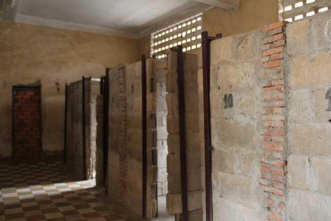 Sınıfların hepsi hücreye dönüştürülmüş hatta o kadar çok kişiyi o okulda tutabilmek için odaların içine ya tuğladan ya da tahtadan küçük küçük odalar yapmışlar. Burda tutma amaçları kişinin suçunu itiraf etmesi (türlü türlü işkence sonrasında ister istemez söylenen suçları kabul ettirmek ve haklarında tutanak tutturulması ) sonrasında da tabii ki idam’a mahkum edilmek üzere ölüm tarlalarına götürülmeleri.
